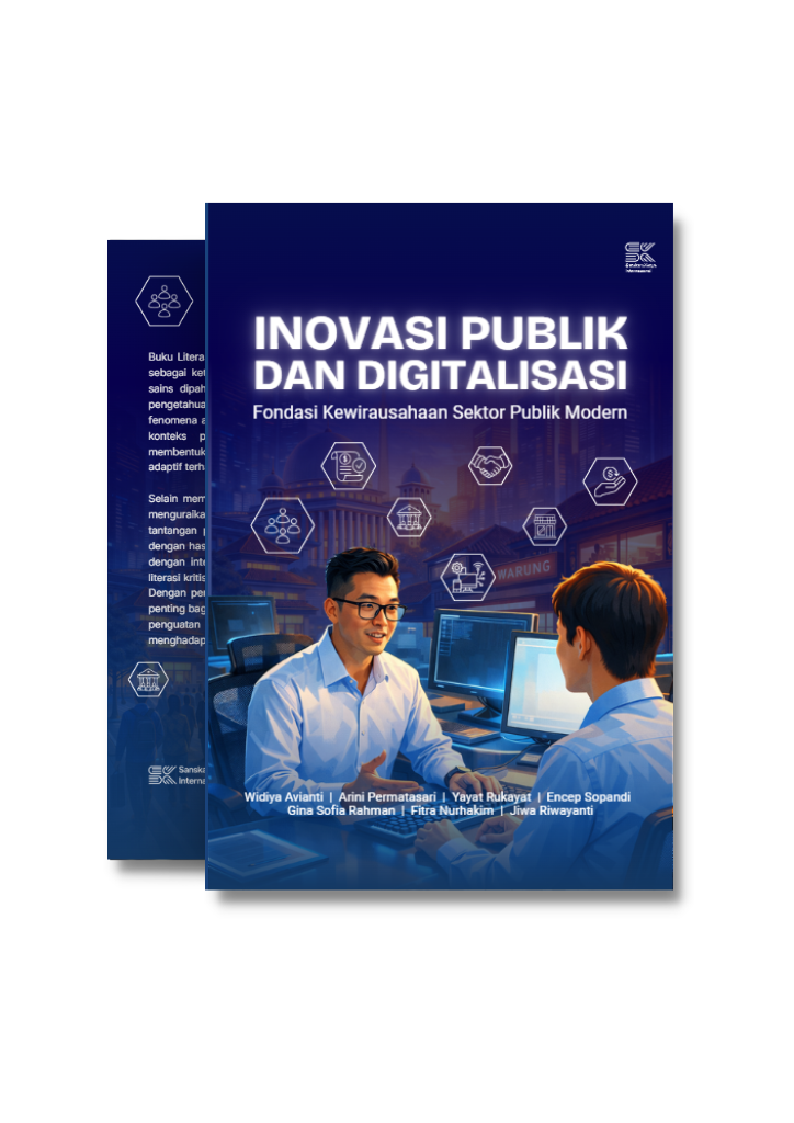 Buku Inovasi Publik dan Digitalisasi: Fondasi Kewirausahaan Sektor Publik Modern membahas transformasi paradigma administrasi publik menuju pendekatan yang lebih inovatif, adaptif, dan berorientasi pada penciptaan nilai publik. Dalam konteks perubahan sosial dan disrupsi teknologi yang semakin cepat, sektor publik dituntut untuk tidak lagi hanya berperan sebagai regulator, tetapi juga sebagai fasilitator dan penggerak inovasi bagi masyarakat. Buku ini menguraikan konsep kewirausahaan sektor publik sebagai pendekatan strategis untuk meningkatkan kualitas pelayanan publik melalui reformasi birokrasi, digitalisasi layanan, serta penguatan peran aparatur sipil negara sebagai agen perubahan yang inovatif dan berorientasi pada hasil. Selain membahas landasan konseptual seperti New Public Management dan Reinventing Government, buku ini juga menyajikan berbagai contoh inovasi pelayanan publik berbasis teknologi dan kolaborasi lintas sektor. Beragam studi kasus, seperti layanan digital agribisnis, pengelolaan sampah berbasis edukasi lingkungan, layanan kesehatan mental digital, transformasi Posyandu berbasis komunitas, hingga digitalisasi layanan perpajakan daerah, menunjukkan bagaimana inovasi dapat meningkatkan efisiensi, transparansi, dan aksesibilitas layanan publik.
